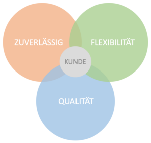 Der Kunde steht bei uns im Mittelpunkt. Durch unsere drei Faktoren Zuverlässigkeit, Flexibilität und Qualität möchten wir Sie als Kunde mehr als nur zufriedenstellen.